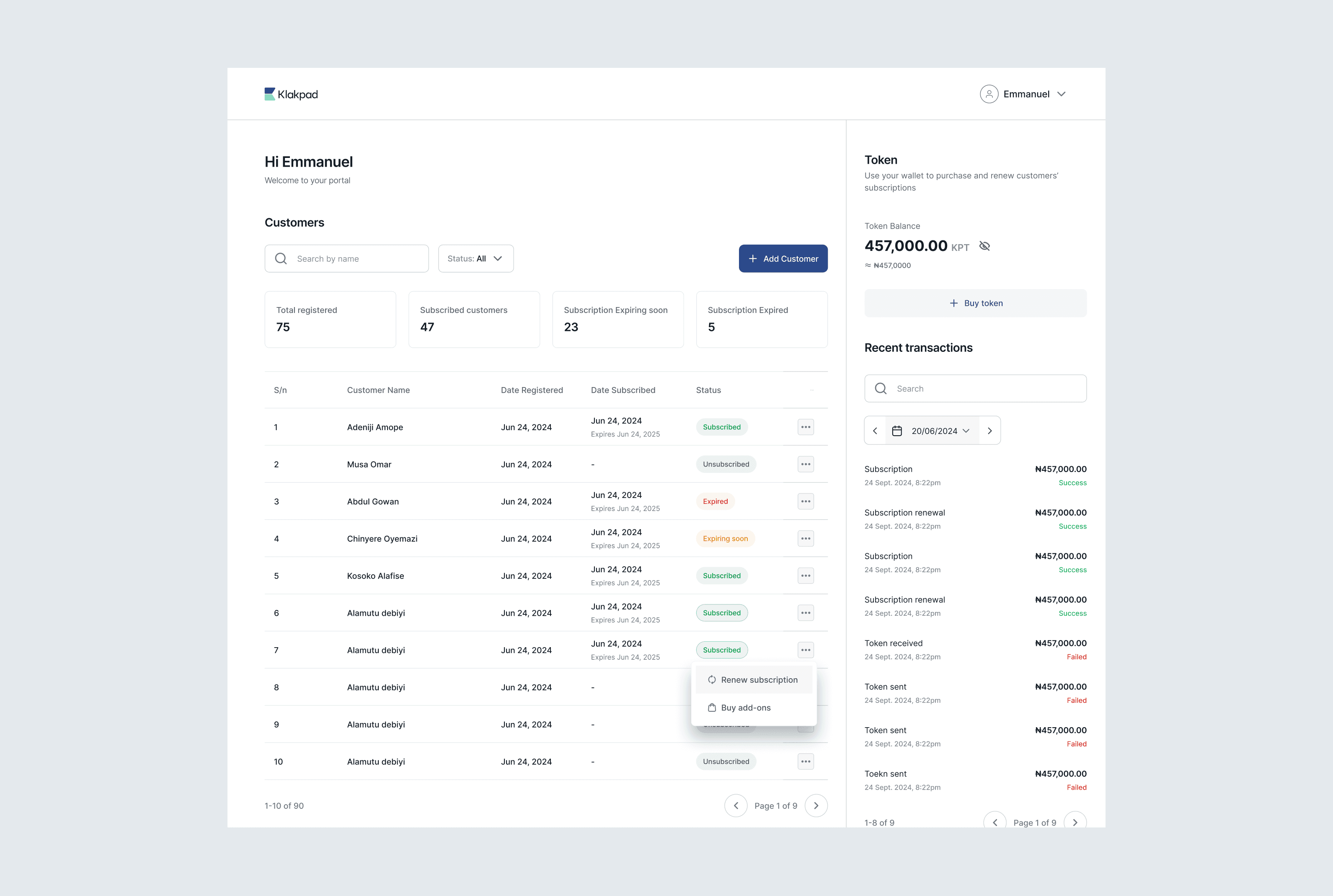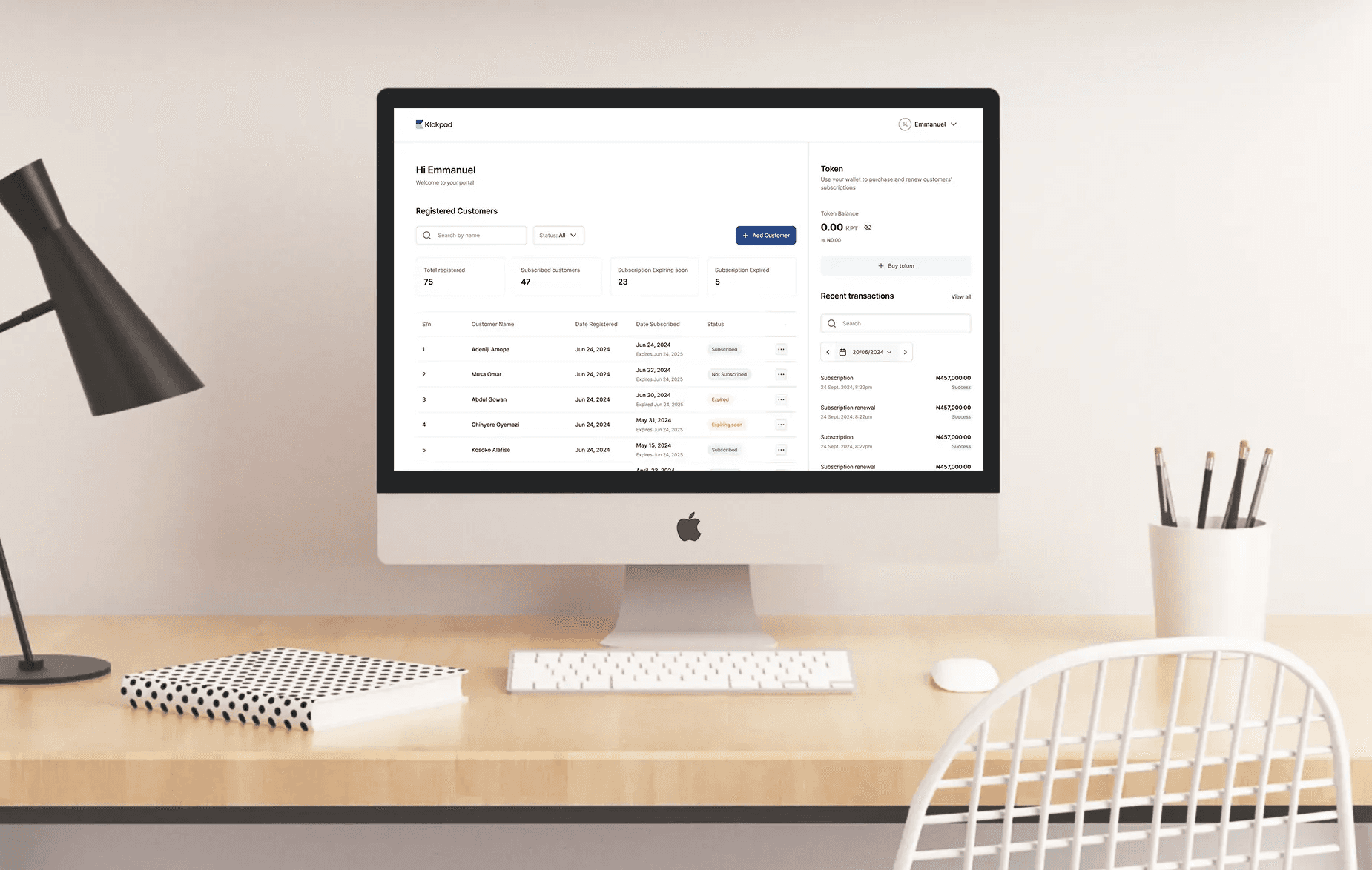 Klakpad is a business management platform that helps businesses manage their inventory and subscriptions.